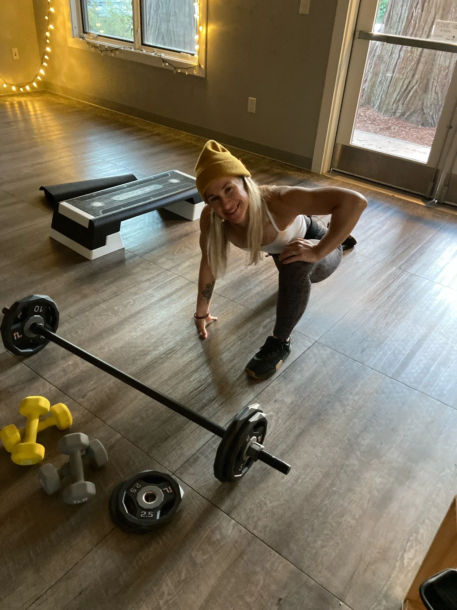 A full body strength focused workout using a barbell and weight plates to build muscle and fire up your metabolism. The class starts with a warm up and moves into the following targeted exercise: squats, chest, back, triceps, biceps, lunges, shoulders, and abs.